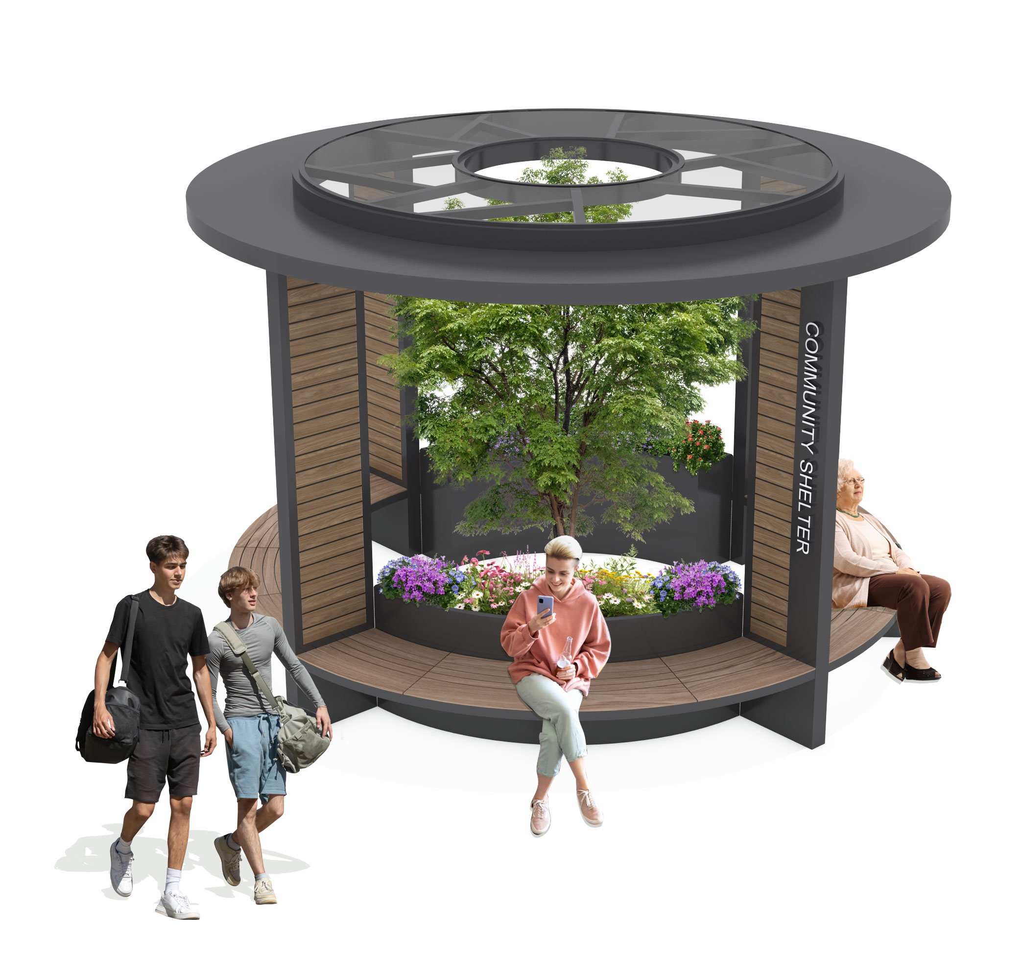 가든 서클 쉼터 (Garden Circle Shelter)|GC-P-336 제품목록으로 바로가기 자료 및 바로가기 나라장터 바로연결 도면 다운로드 시공사진 보러가기 기타 중앙 식재 공간을 품은 원형 구조로 자연과 사람이 함께 머무는 힐링 쉼터이며, 투명 루프와 우드 패널이 조화를 이루어 공원·단지·캠퍼스에 그린 포인트를 제공합니다. 제품명 가든 서클 쉼터 (Garden Circle Shelter)|GC-P-336 물품식별번호 25565296 규격 4,000 × 4,000 × 2,700(H) 재질 stl, galvanized, polycarbonate, hard wood, hpl 가든 서클 쉼터 (Garden Circle Shelter)|GC-P-336 물품식별번호 25565296 규격 4,000 × 4,000 × 2,700(H) 재질 stl, galvanized, polycarbonate, hard wood, hpl 기타 중앙 식재 공간을 품은 원형 구조로 자연과 사람이 함께 머무는 힐링 쉼터이며, 투명 루프와 우드 패널이 조화를 이루어 공원·단지·캠퍼스에 그린 포인트를 제공합니다. 자료 및 바로가기 나라장터 바로연결 도면 다운로드 시공사진 보러가기