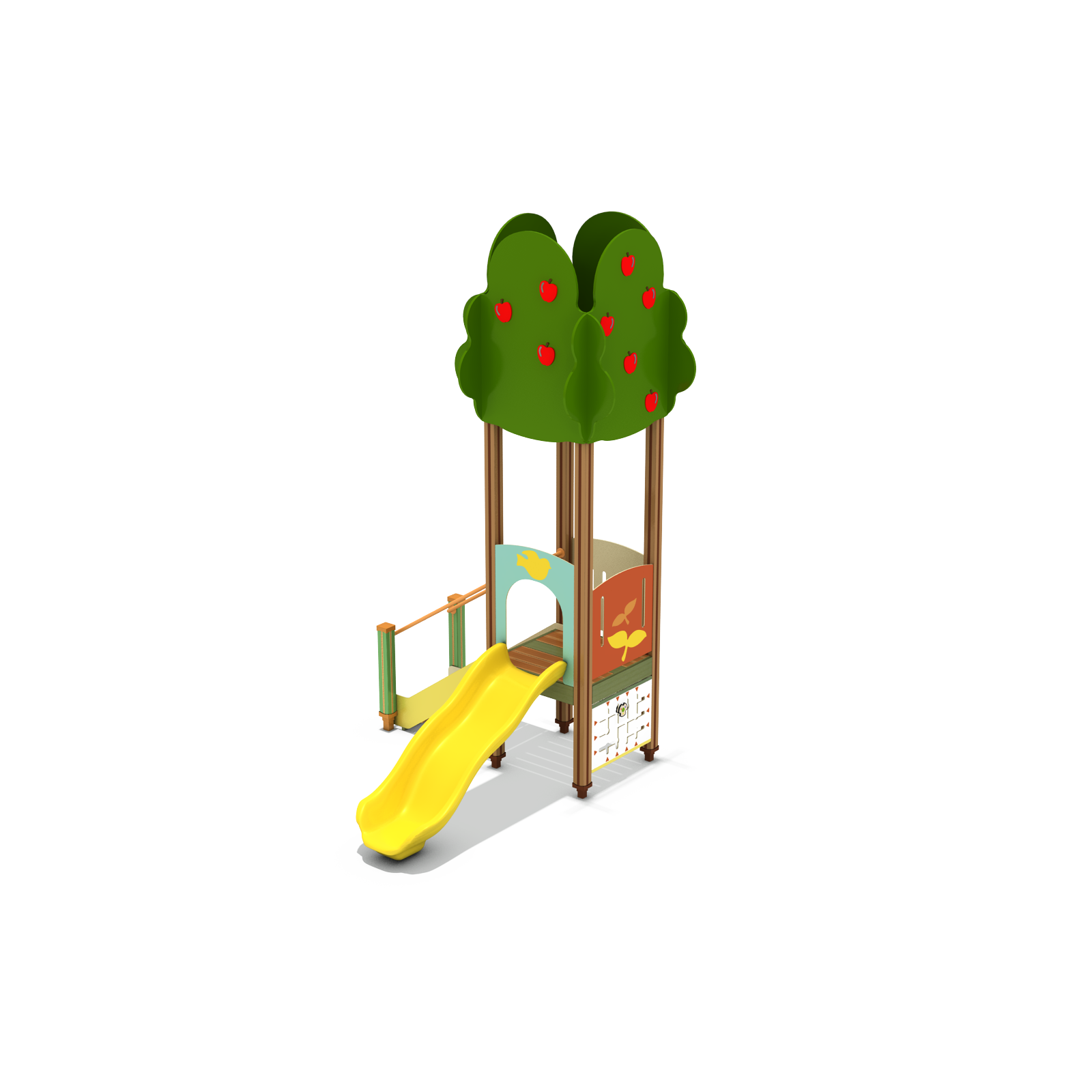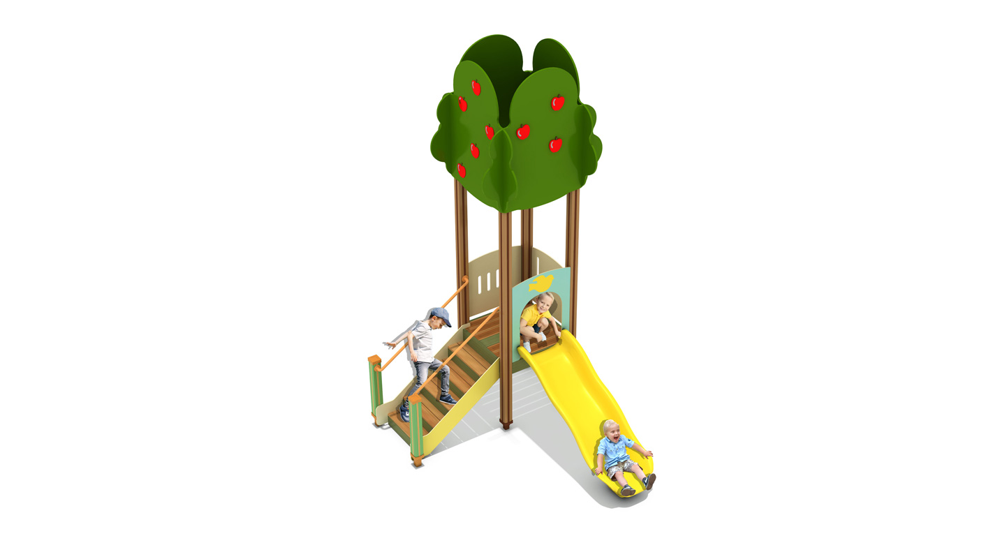애플 트리 플레이타워 (Apple Tree Play Tower)|GGPG-004A-13 제품목록으로 바로가기 자료 및 바로가기 나라장터 바로연결 도면 다운로드 시공사진 보러가기 기타 사과가 열린 큰 나무를 모티브로 한 단일 타워형 놀이시설로, 계단과 슬라이드를 직관적으로 구성해 아이들이 나무에 오르고 열매 아래로 내려오듯 자연스럽고 안정적인 놀이 경험을 즐기도록 설계한 숲·가든 테마 조합놀이시설입니다. 제품명 애플 트리 플레이타워 (Apple Tree Play Tower)|GGPG-004A-13 물품식별번호 25988113|안전인증번호:CA023H10019-3024 규격 3,360 × 2,440 × 4,254H), 3종 재질 stl, hpl, pe, hard wood 애플 트리 플레이타워 (Apple Tree Play Tower)|GGPG-004A-13 물품식별번호 25988113|안전인증번호:CA023H10019-3024 규격 3,360 × 2,440 × 4,254H), 3종 재질 stl, hpl, pe, hard wood 기타 사과가 열린 큰 나무를 모티브로 한 단일 타워형 놀이시설로, 계단과 슬라이드를 직관적으로 구성해 아이들이 나무에 오르고 열매 아래로 내려오듯 자연스럽고 안정적인 놀이 경험을 즐기도록 설계한 숲·가든 테마 조합놀이시설입니다. 자료 및 바로가기 나라장터 바로연결 도면 다운로드 시공사진 보러가기