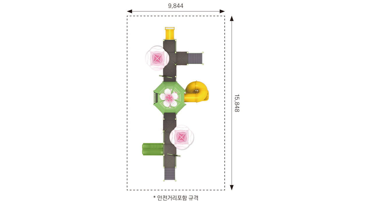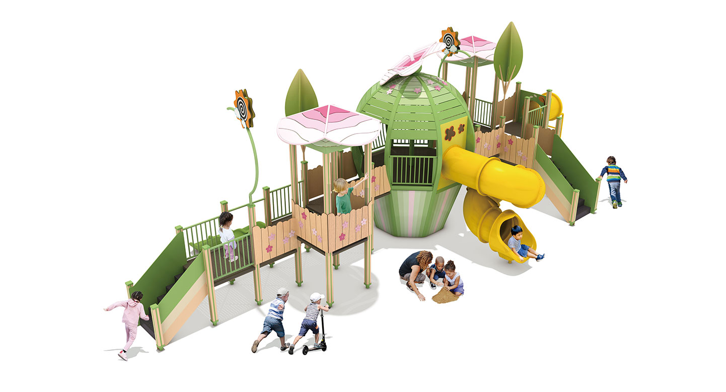 블로썸 힐 가든 어드벤처(Blossom Hill Garden Adventure)|FNK-041-2A 제품목록으로 바로가기 자료 및 바로가기 나라장터 바로연결 도면 다운로드 시공사진 보러가기 기타 꽃과 언덕을 모티브로 한 중앙 돔형 구조와 데크·미끄럼틀을 연결해 아이들이 이동하며 오르고 내려오는 놀이 흐름을 자연스럽게 경험할 수 있도록 구성한 조합 놀이시설이다. 제품명 블로썸 힐 가든 어드벤처(Blossom Hill Garden Adventure)|FNK-041-2A 물품식별번호 25988171|안전인증번호:CA023H10019-3014 규격 12,848 × 5,844 × 4,430(H), 5종 재질 stl, hpl, pe, hard wood 블로썸 힐 가든 어드벤처(Blossom Hill Garden Adventure)|FNK-041-2A 물품식별번호 25988171|안전인증번호:CA023H10019-3014 규격 12,848 × 5,844 × 4,430(H), 5종 재질 stl, hpl, pe, hard wood 기타 꽃과 언덕을 모티브로 한 중앙 돔형 구조와 데크·미끄럼틀을 연결해 아이들이 이동하며 오르고 내려오는 놀이 흐름을 자연스럽게 경험할 수 있도록 구성한 조합 놀이시설이다. 자료 및 바로가기 나라장터 바로연결 도면 다운로드 시공사진 보러가기