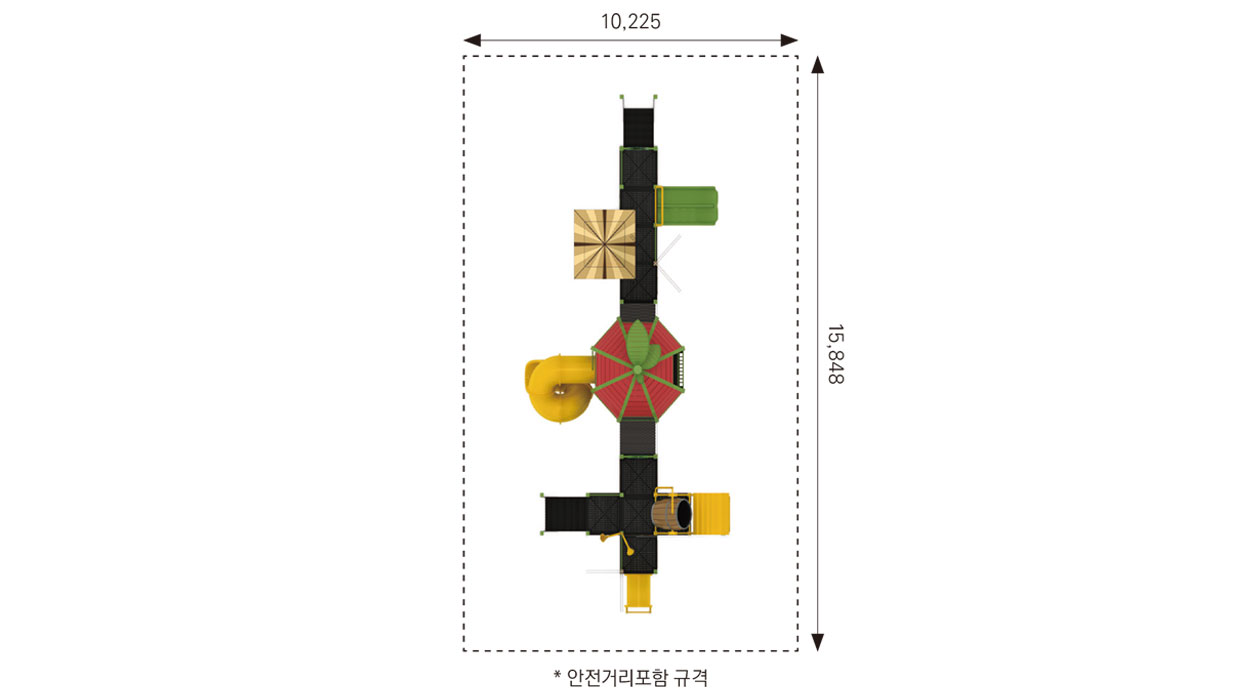 열대 과일과 정글을 모티브로 한 구조에 워터버킷 낙수, 분사형 워터 스프레이, 터널형 미끄럼틀을 결합한 물놀이 조합놀이대로, 아이들이 오르기·이동·미끄러지기 놀이 과정에서 물의 떨어짐과 흐름을 직접 체험하며 여름철 신체 활동과 감각 놀이를 동시에 즐길 수 있도록 구성하였다.