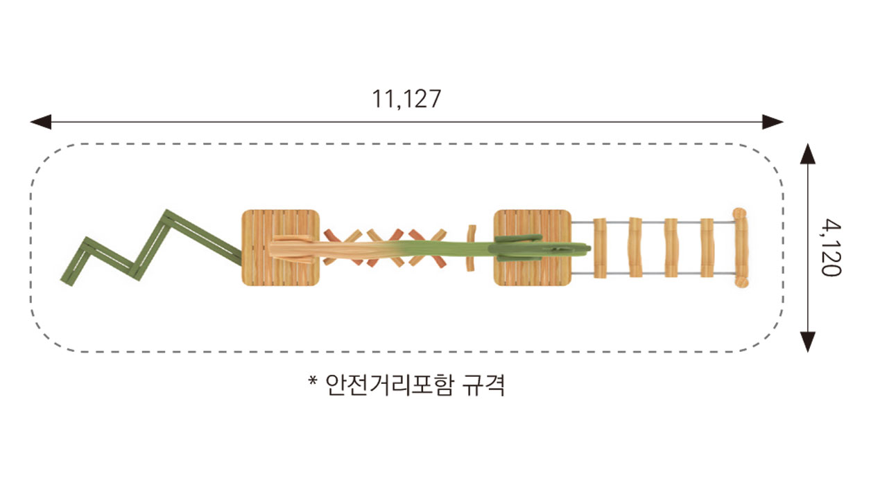 F&K-RO-016-4(숲속건너기A) 안전인증번호 | CA023H074-0071 제품목록으로 바로가기 자료 및 바로가기 나라장터 바로연결 도면 다운로드 시공사진 보러가기 기타 균형력을 유지하며 원목 발판과 로프를 따라 이동하는 자연형 체험 놀이시설입니다. 흔들리지 않는 고정형 발판 구조로 안정감을 제공하며, 아이들이 숲속을 걷는 듯한 감각을 느끼며 모험심과 집중력을 기를 수 있습니다. 제품명 F&K-RO-016-4(숲속건너기A) 안전인증번호 | CA023H074-0071 물품식별번호 24056555 규격 8,127 × 1,120 × 3,480(H) 재질 robinia, PP rope F&K-RO-016-4(숲속건너기A) 안전인증번호 | CA023H074-0071 물품식별번호 24056555 규격 8,127 × 1,120 × 3,480(H) 재질 robinia, PP rope 기타 균형력을 유지하며 원목 발판과 로프를 따라 이동하는 자연형 체험 놀이시설입니다. 흔들리지 않는 고정형 발판 구조로 안정감을 제공하며, 아이들이 숲속을 걷는 듯한 감각을 느끼며 모험심과 집중력을 기를 수 있습니다. 자료 및 바로가기 나라장터 바로연결 도면 다운로드 시공사진 보러가기