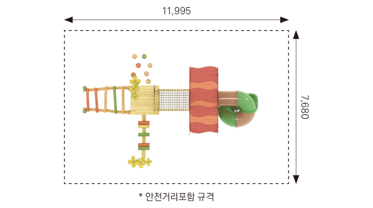 블로썸 스텝 로비니아 플레이(Blossom Step Robinia Play)|FNK-RO-107A-5 제품목록으로 바로가기 자료 및 바로가기 나라장터 바로연결 도면 다운로드 시공사진 보러가기 기타 로비니아 원목을 활용해 꽃과 자연 요소를 형상화한 단일 타워형 놀이대로, 징검·오르기·미끄럼 동선을 통해 아이들이 단계적으로 이동하며 균형감과 자연 탐험 놀이를 경험하도록 구성한 로비니아 조합놀이대이다. 제품명 블로썸 스텝 로비니아 플레이(Blossom Step Robinia Play)|FNK-RO-107A-5 물품식별번호 25988206|안전인증번호:CA023H10019-2001 규격 8,495 × 4,680 × 4,470(H), 4종 재질 robinia, hpl, pe, PP rope, hard wood 블로썸 스텝 로비니아 플레이(Blossom Step Robinia Play)|FNK-RO-107A-5 물품식별번호 25988206|안전인증번호:CA023H10019-2001 규격 8,495 × 4,680 × 4,470(H), 4종 재질 robinia, hpl, pe, PP rope, hard wood 기타 로비니아 원목을 활용해 꽃과 자연 요소를 형상화한 단일 타워형 놀이대로, 징검·오르기·미끄럼 동선을 통해 아이들이 단계적으로 이동하며 균형감과 자연 탐험 놀이를 경험하도록 구성한 로비니아 조합놀이대이다. 자료 및 바로가기 나라장터 바로연결 도면 다운로드 시공사진 보러가기