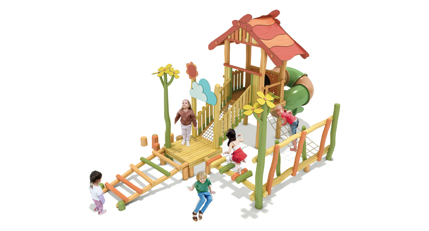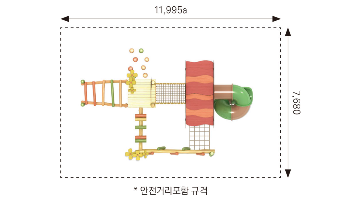 플라워 힐 로비니아 플레이(Flower Hill Robinia Play)|FNK-RO-107-4 제품목록으로 바로가기 자료 및 바로가기 나라장터 바로연결 도면 다운로드 시공사진 보러가기 기타 로비니아 원목을 사용해 꽃과 언덕을 모티브로 한 데크·징검·오르기 요소를 연결한 로비니아 조합놀이대이다. 아이들이 걷고 건너며 완만한 높이 변화를 경험하도록 구성해 균형감과 자연 친화적 탐험 놀이를 유도한다. 제품명 플라워 힐 로비니아 플레이(Flower Hill Robinia Play)|FNK-RO-107-4 물품식별번호 24724871|안전인증번호:CA023H10019-2001 규격 8,495 × 4,680 × 4,470(H), 6종 재질 robinia, hpl, pe, PP rope, hard wood 플라워 힐 로비니아 플레이(Flower Hill Robinia Play)|FNK-RO-107-4 물품식별번호 24724871|안전인증번호:CA023H10019-2001 규격 8,495 × 4,680 × 4,470(H), 6종 재질 robinia, hpl, pe, PP rope, hard wood 기타 로비니아 원목을 사용해 꽃과 언덕을 모티브로 한 데크·징검·오르기 요소를 연결한 로비니아 조합놀이대이다. 아이들이 걷고 건너며 완만한 높이 변화를 경험하도록 구성해 균형감과 자연 친화적 탐험 놀이를 유도한다. 자료 및 바로가기 나라장터 바로연결 도면 다운로드 시공사진 보러가기