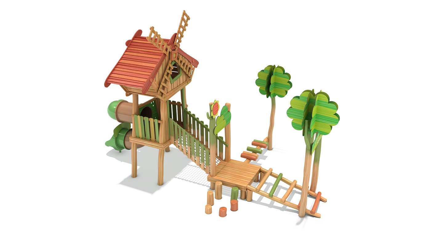 리틀 윈드밀 로비니아 플레이(Little Windmill Robinia Play)|FNK-RO-105-5 제품목록으로 바로가기 자료 및 바로가기 나라장터 바로연결 도면 다운로드 시공사진 보러가기 기타 로비니아 원목으로 제작한 풍차 오두막을 중심으로 징검·브리지·오르기 요소를 배치해 아이들이 걷고 건너며 균형감과 탐험 놀이를 자연스럽게 경험하도록 구성한 로비니아 조합놀이대이다. 제품명 리틀 윈드밀 로비니아 플레이(Little Windmill Robinia Play)|FNK-RO-105-5 물품식별번호 24724873|안전인증번호:CA023H10019-2001 규격 8,895 × 5,316 × 5,390(H), 4종 재질 robinia, hpl, pe, PP rope, hard wood 리틀 윈드밀 로비니아 플레이(Little Windmill Robinia Play)|FNK-RO-105-5 물품식별번호 24724873|안전인증번호:CA023H10019-2001 규격 8,895 × 5,316 × 5,390(H), 4종 재질 robinia, hpl, pe, PP rope, hard wood 기타 로비니아 원목으로 제작한 풍차 오두막을 중심으로 징검·브리지·오르기 요소를 배치해 아이들이 걷고 건너며 균형감과 탐험 놀이를 자연스럽게 경험하도록 구성한 로비니아 조합놀이대이다. 자료 및 바로가기 나라장터 바로연결 도면 다운로드 시공사진 보러가기