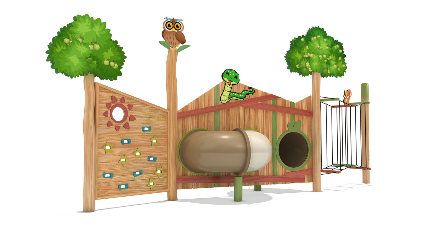 FNK-RO-036(동굴숲놀이대) 안전인증번호 | CA023H10019-3028 제품목록으로 바로가기 자료 및 바로가기 나라장터 바로연결 도면 다운로드 시공사진 보러가기 기타 다양한 동물·숲속 요소로 구성된 테마형 놀이시설로, 아이들이 기어가고, 오르고, 건너며 자연 탐험과 역할놀이를 즐길 수 있는 체험형 복합 놀이대입니다. 터널과 암벽, 로프 브리지 등이 결합되어 신체운동능력과 상상력을 동시에 자극합니다. 제품명 FNK-RO-036(동굴숲놀이대) 안전인증번호 | CA023H10019-3028 물품식별번호 25114811 규격 9,290 × 2,240 × 3,695(H) 재질 robinia, PP rope, pe, hpl FNK-RO-036(동굴숲놀이대) 안전인증번호 | CA023H10019-3028 물품식별번호 25114811 규격 9,290 × 2,240 × 3,695(H) 재질 robinia, PP rope, pe, hpl 기타 다양한 동물·숲속 요소로 구성된 테마형 놀이시설로, 아이들이 기어가고, 오르고, 건너며 자연 탐험과 역할놀이를 즐길 수 있는 체험형 복합 놀이대입니다. 터널과 암벽, 로프 브리지 등이 결합되어 신체운동능력과 상상력을 동시에 자극합니다. 자료 및 바로가기 나라장터 바로연결 도면 다운로드 시공사진 보러가기