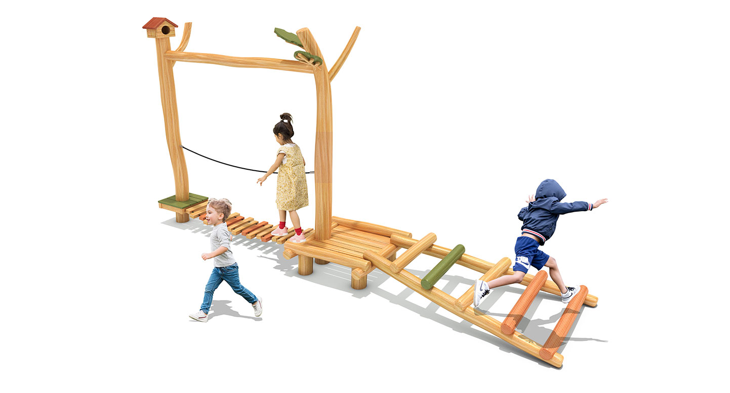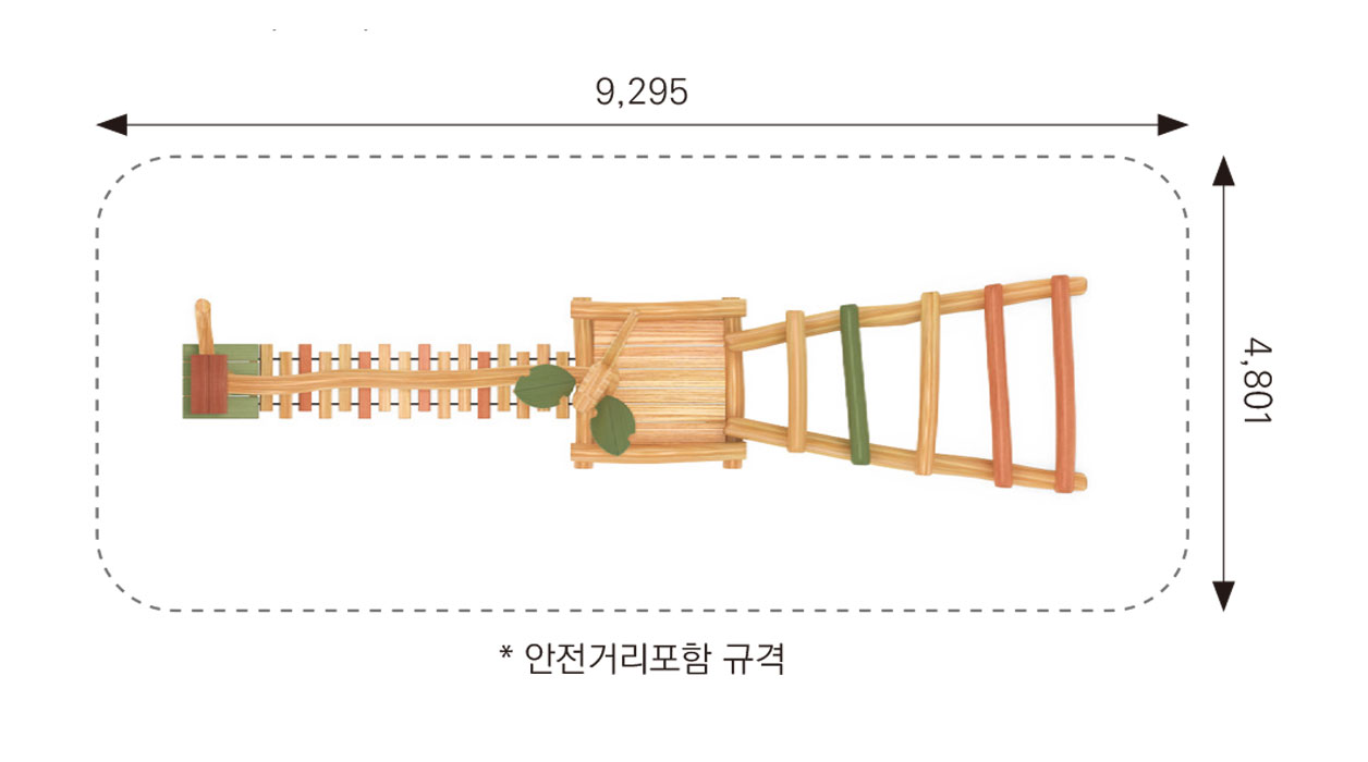 F&K-RO-023-3(숲속모험건너기D) 안전인증번호 | CA023H074-0061 제품목록으로 바로가기 자료 및 바로가기 나라장터 바로연결 도면 다운로드 시공사진 보러가기 기타 아이들이 통나무와 로프 다리를 차례로 건너며 균형감각과 협동심을 기를 수 있는 자연형 놀이시설입니다. 각 구간마다 높낮이가 달라 도전의 재미를 느낄 수 있으며, 나뭇잎과 새집 모티브가 어우러져 숲속 탐험의 생동감을 제공합니다. 제품명 F&K-RO-023-3(숲속모험건너기D) 안전인증번호 | CA023H074-0061 물품식별번호 24050931 규격 1,801 × 6,295 × 2,750(H) 재질 robinia, PP rope F&K-RO-023-3(숲속모험건너기D) 안전인증번호 | CA023H074-0061 물품식별번호 24050931 규격 1,801 × 6,295 × 2,750(H) 재질 robinia, PP rope 기타 아이들이 통나무와 로프 다리를 차례로 건너며 균형감각과 협동심을 기를 수 있는 자연형 놀이시설입니다. 각 구간마다 높낮이가 달라 도전의 재미를 느낄 수 있으며, 나뭇잎과 새집 모티브가 어우러져 숲속 탐험의 생동감을 제공합니다. 자료 및 바로가기 나라장터 바로연결 도면 다운로드 시공사진 보러가기