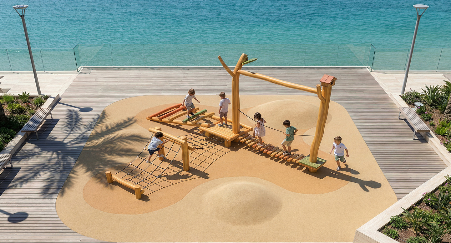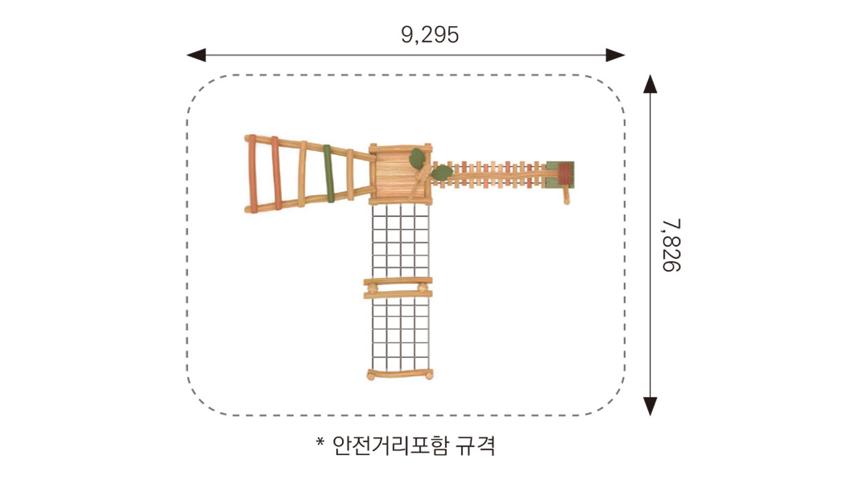 F&K-RO-023-2(숲속모험건너기C) 안전인증번호 | CA023H074-0061 제품목록으로 바로가기 자료 및 바로가기 나라장터 바로연결 도면 다운로드 시공사진 보러가기 기타 다양한 원목 장애물과 로프 구조를 연속적으로 통과하며 균형감각과 민첩성을 기를 수 있는 자연형 모험 놀이시설입니다. 아이들이 숲을 탐험하듯 이동하며 상상력과 신체 능력을 동시에 향상시킬 수 있는 체험형 코스입니다. 제품명 F&K-RO-023-2(숲속모험건너기C) 안전인증번호 | CA023H074-0061 물품식별번호 24050930 규격 4,826 × 6,295 × 2,750(H) 재질 robinia, PP rope F&K-RO-023-2(숲속모험건너기C) 안전인증번호 | CA023H074-0061 물품식별번호 24050930 규격 4,826 × 6,295 × 2,750(H) 재질 robinia, PP rope 기타 다양한 원목 장애물과 로프 구조를 연속적으로 통과하며 균형감각과 민첩성을 기를 수 있는 자연형 모험 놀이시설입니다. 아이들이 숲을 탐험하듯 이동하며 상상력과 신체 능력을 동시에 향상시킬 수 있는 체험형 코스입니다. 자료 및 바로가기 나라장터 바로연결 도면 다운로드 시공사진 보러가기
